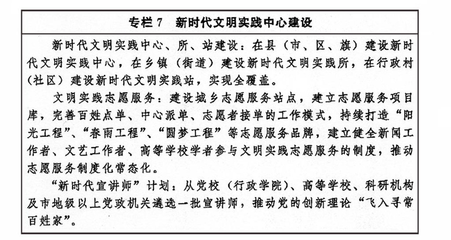 以實施文明創(chuàng)建工程為抓手,推動文明培育、文明實踐、文明創(chuàng)建不斷深入。創(chuàng)造性開展文明城市、文明村鎮(zhèn)、文明單位、文明家庭、文明校園和未成年人思想道德建設(shè)工作先進等精神文明創(chuàng)建活動,拓展新時代文明實踐中心建設(shè)。弘揚科學精神,深入開展愛國衛(wèi)生運動,深化文明餐桌行動和“光盤行動”,倡導文明健康、綠色環(huán)保的生活方式。健全志愿服務(wù)體系,廣泛開展志愿服務(wù)關(guān)愛行動。加強網(wǎng)絡(luò)文明建設(shè)。