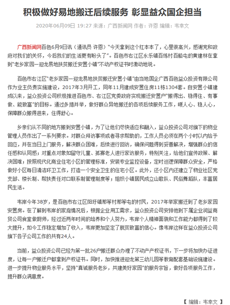 積極做好易地搬遷后續(xù)服務(wù) 彰顯益眾國企擔(dān)當(dāng)-廣西新聞網(wǎng)文章鏈接