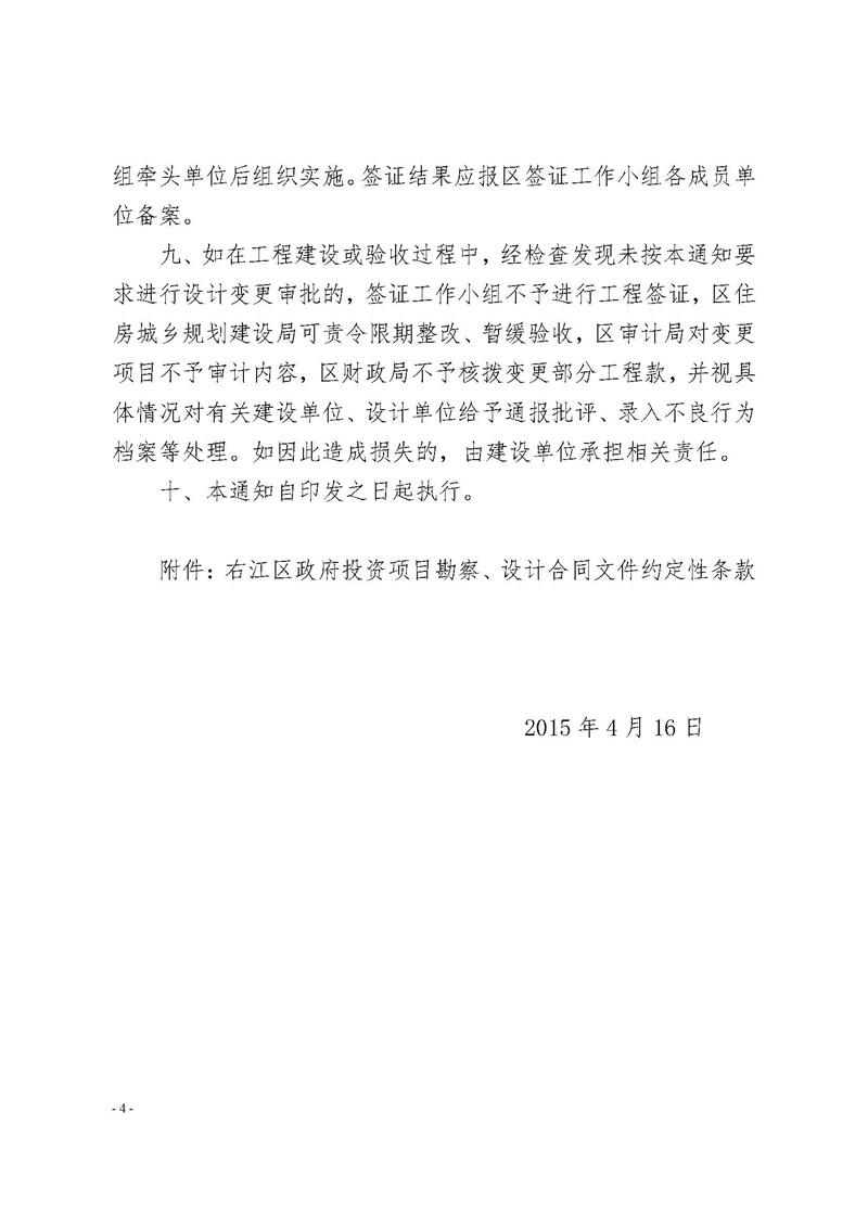 右政辦發(fā)[2015]25號 關(guān)于進(jìn)一步加強(qiáng)右江區(qū)政府投資項(xiàng)目簽證管理工作的通知