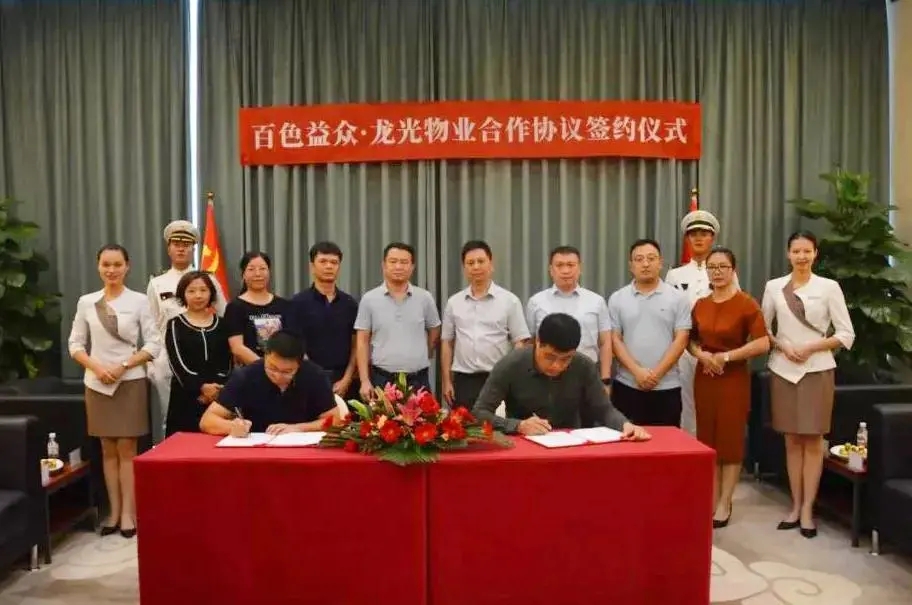 ????????日前,由廣西百色益眾投資有限公司旗下百色益眾物業(yè)服務(wù)有限公司與深圳市前海龍光服務(wù)控股有限公司旗下深圳市龍光實(shí)業(yè)有限公司合資成立的廣西龍光益眾物業(yè)服務(wù)有限公司的簽約儀式在南寧龍光國(guó)際舉行。