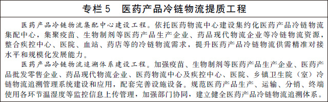 提升醫(yī)藥產(chǎn)品冷鏈物流應(yīng)急保障水平。研究將醫(yī)藥產(chǎn)品冷鏈物流納入國家應(yīng)急物資保障平臺,整合行業(yè)醫(yī)藥冷庫、車輛、標(biāo)準(zhǔn)化載器具等資源,健全應(yīng)急聯(lián)動服務(wù)及統(tǒng)一調(diào)度機(jī)制,提高醫(yī)藥產(chǎn)品冷鏈應(yīng)急保障能力。完善全國統(tǒng)一的醫(yī)藥產(chǎn)品冷鏈物流特別管理機(jī)制,保障緊急狀態(tài)下疫苗及其他醫(yī)藥產(chǎn)品冷鏈運(yùn)輸暢通和物流過程質(zhì)量安全。