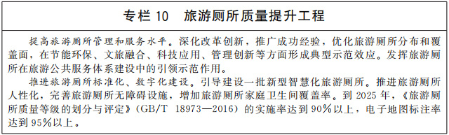 優(yōu)化旅游公共服務(wù)設(shè)施布局,完善配套設(shè)施和功能。適應(yīng)游客出行方式變化,加大面向散客的旅游公共服務(wù)力度??茖W(xué)規(guī)劃建設(shè)旅游景區(qū)停車場、內(nèi)部交通、便民設(shè)施、標(biāo)識標(biāo)牌等,合理配置廁所、垃圾桶,建設(shè)一批示范性旅游廁所,進(jìn)一步鞏固旅游廁所革命成果。推動(dòng)文化和旅游公共服務(wù)共建共享,探索建設(shè)一批文化和旅游綜合服務(wù)設(shè)施。推動(dòng)文化服務(wù)進(jìn)旅游景區(qū),在旅游設(shè)施、旅游服務(wù)中增加文化元素和內(nèi)涵,體現(xiàn)人文關(guān)懷。充分考慮特殊群體需求,健全無障礙旅游公共服務(wù)標(biāo)準(zhǔn)規(guī)范,加強(qiáng)老年人、殘疾人等便利化旅游設(shè)施建設(shè)和改造,推動(dòng)將無障礙旅游內(nèi)容納入相關(guān)無障礙公共服務(wù)政策。