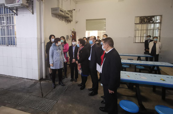 4月2日下午,市人大常委會副主任黃運志到我公司下屬益眾托管公司逸夫校區(qū)就開學前校園疫情防控準備工作進行檢查,重點查看了校區(qū)食堂、就餐區(qū)、托管宿舍樓、防疫物資儲備室等地。